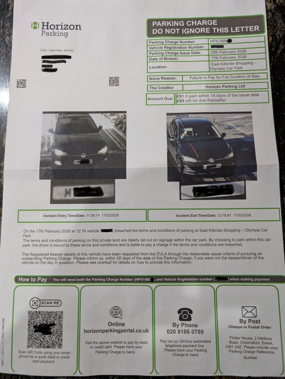 East Kilbride Shopping · Failure to Pay for Full Duration of Stay
